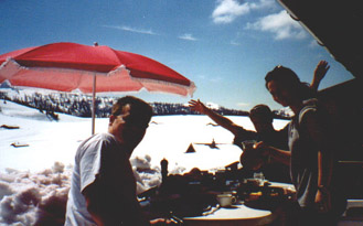 kurz nach Ostern ´99 sind wir noch ein Mal zum Boarden auf Mikes Huette in Lofer.